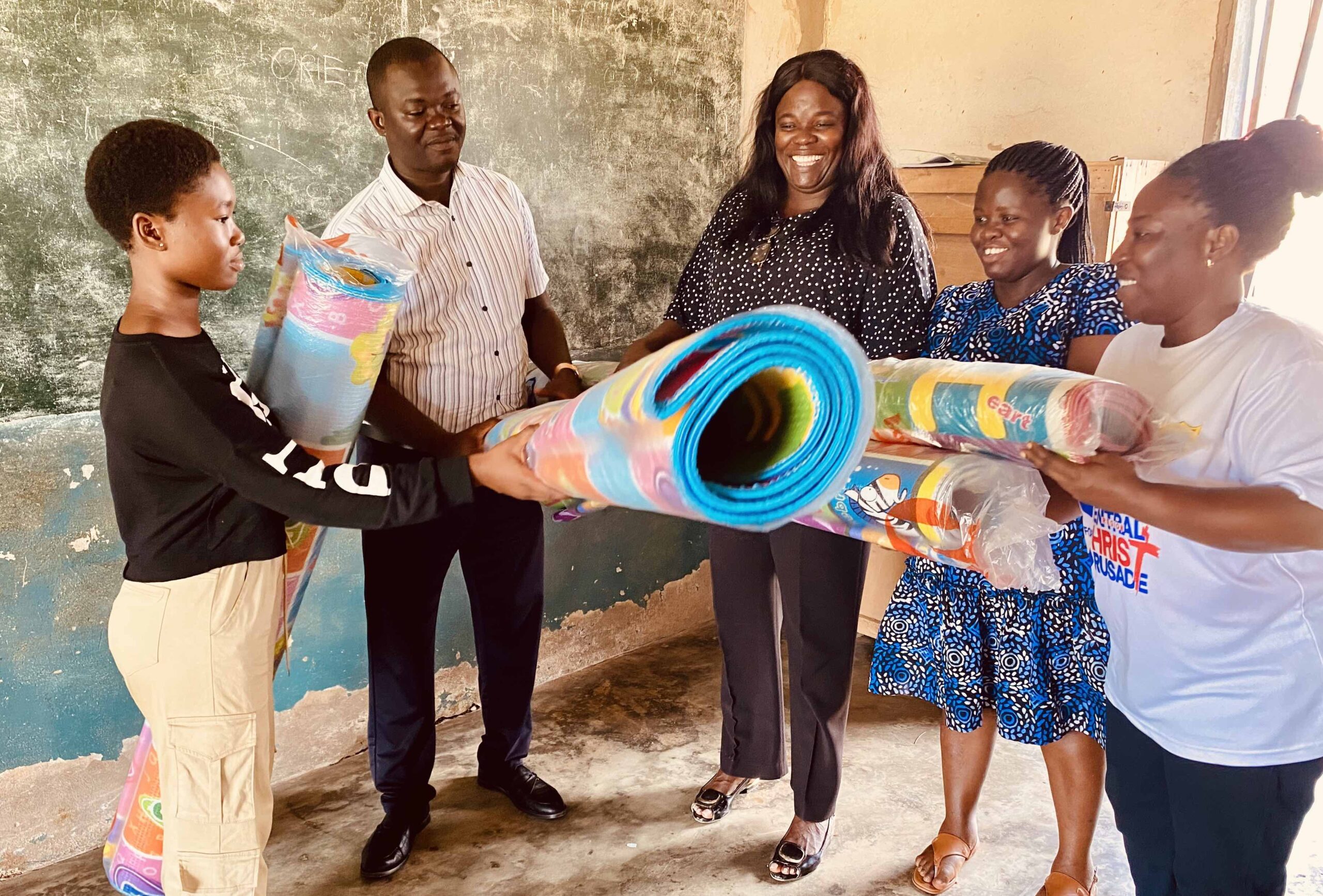 When the Michael Kunke Foundation team returned to Ruth Sunquist M/A Basic School in Amoanda, the scene that stayed with them was simple and urgent: nursery and kindergarten children resting on thin cloths laid directly on a cement floor during breaks and nap time. What may seem minor a cold, hard surface matters greatly at the earliest stages of learning. Comfortable, safe spaces support rest, play and the social-emotional development that underpins school readiness. With funding from Felicia Brown, the Foundation donated play mats to the school under its Education Empowerment for Sustainable Communities (EESC) programme. The mats were placed in nursery and kindergarten classrooms to provide soft, hygienic surfaces where children can rest, play and take part in guided early-learning activities.